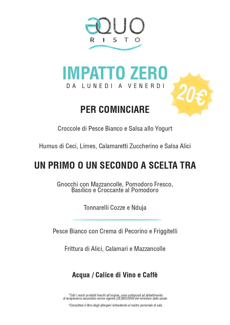 Menu Pranzo di EQuo Risto Fiumicino-Ostia